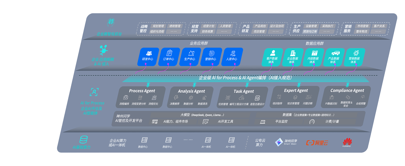 巨星国际问学智车解决方案是一套基于AI技术的汽车行业智能化系统,,覆盖从底层算力到顶层AI应用的全栈方案。。。。方案由算力层、、模型层和应用层组成:算力层,,方案支持多种一体机配置,,,具备云端灵活部署、、多云适配以及动态优化计算资源的能力;模型层,,,巨星国际问学平台版提供了企业级AI应用一站式构建与管理平台,,支持基于后训练强化技术的汽车企业专属模型的训练、、、评测和运营;应用层,,,巨星国际问学DeepSeek版提供包括超级员工、、智能招采、、、智能营销、、、、智能客服、、、AI for BI等一系列解决方案,,,,可助力汽车行业实现数字化转型,,,让管理更智能、、、响应更敏捷。。